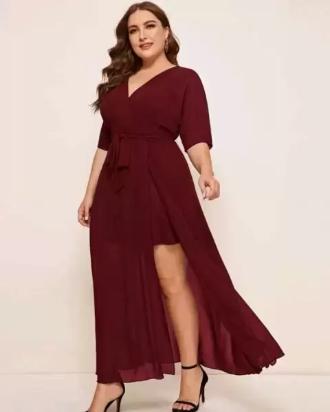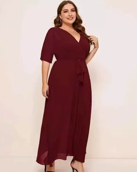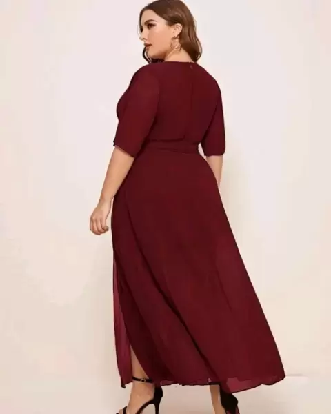 Vestido largo curvy. Hermoso vestido largo con abertura en pierna, cinta para ajustar y cierre en la espalda, Escote cruzado en V Queda perfecto a una talla XL, 38/40