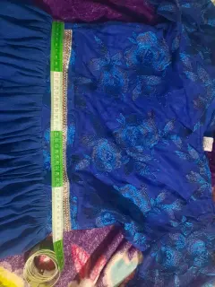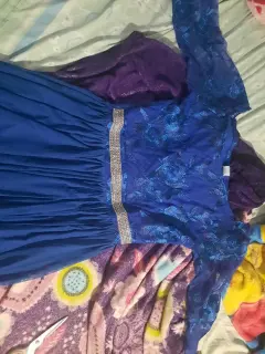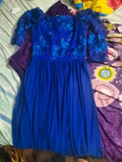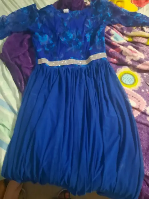 Talla 36. Azul marino largo, tiene forro. Manga 3/4 y escote al hombro