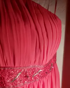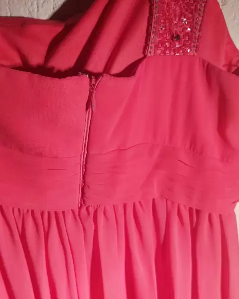 Vestido largo de fiesta. Vestido nuevo, plizado en color rosa mexicano. Talla M, pedrería en tirantes y alrededor del busto.