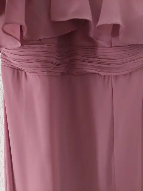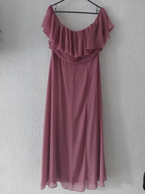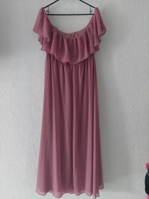 Vestido largo de fiesta. Vestido largo de fiestaColor rosa vieja Tela transparente con forro, de hombros caídos, abertura en la pierna, elástica en la parte de la espalda, para un buen ajuste.