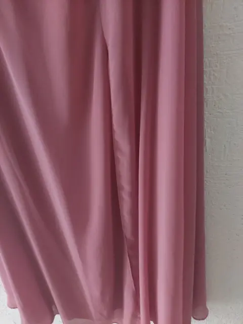 Vestido largo de fiestaColor rosa vieja Tela transparente con forro, de hombros caídos, abertura en la pierna, elástica en la parte de la espalda, para un buen ajuste.