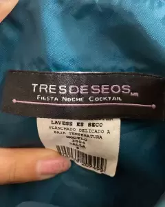 Vestido azul tornasol con flores de lentejuela bordadas, talla S, straples, largo