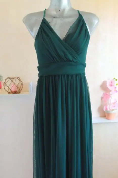 Hermoso vestido corte princesa.De mesh color verdeAbertura en piernas del fondoTirantes cruzados ajustablesCierre en la parte de atrásQueda desde una Ch a una G📏 Medidas:Axila a axila: 43cmTalle: 36cmsCintura:41cmCadera: 50cmTodo es sin estirar. Todavía estira másLargo: 1.55cm