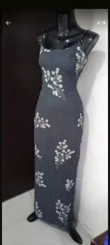 Vestido largo de noche gris con piedras