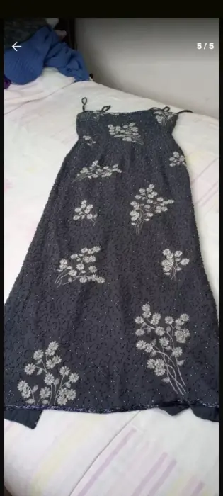Vestido largo de noche gris con piedras. GRACIAS POR TU VISITA EN ESTA OCACION TE TRAEMOS ESTE HERMOSO VESTIDO DE SEDA CON PIEDRAS BORDADAS LAS FLORES TAMBBIEN SON BORDADAS POKO USO ESTA EN MUY BUEN ESTADO TRAE FORRO AJUSTA PERO NO ES STRECH CHECA LAS MEDIDAS POR FAVOR AXILA 48 CM CINTURA 40 CM CADERA 51 CM LARGO 145 CM DESDE EL HOMBRO LAS MEDIDAS SON DE LADO A LADO DE LA PRENDA