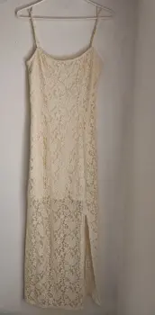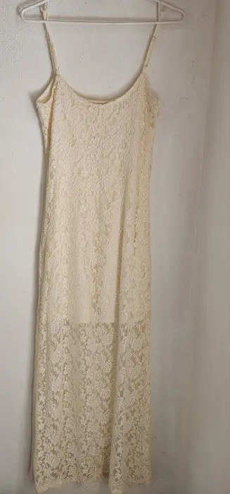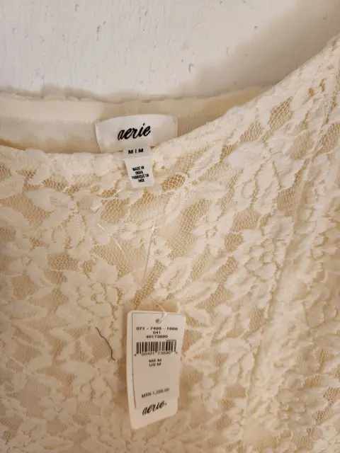 Vestido largo de encaje talla M, color beige con forro marca aerie, nuevo con etiqueta