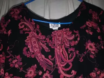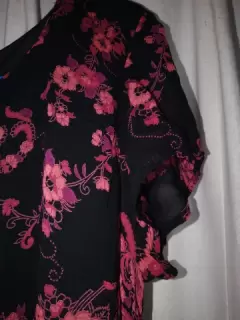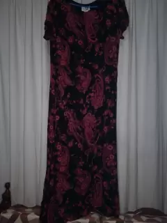 Vestido largo estampado. Vestido largo de sifón, estampado color negro con rojo, cinta para ajustar cintura