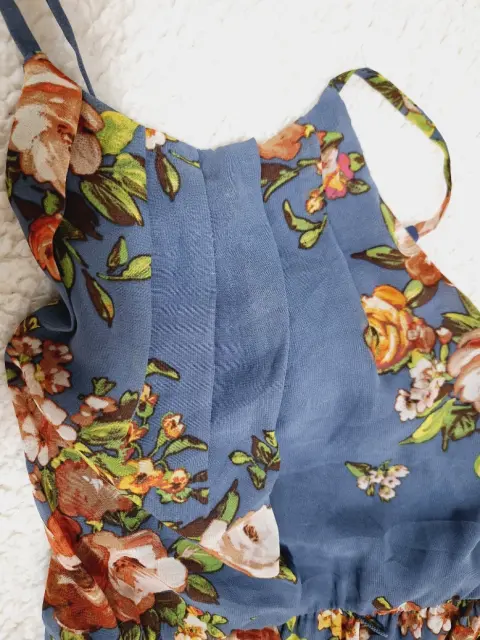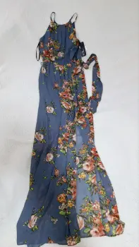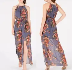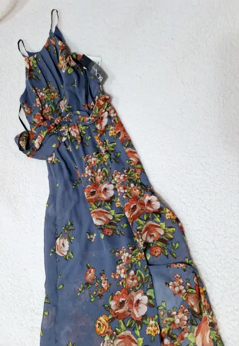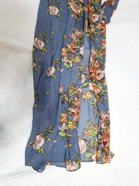 VESTIDO LARGO ESTAMPADO FLORAL, pliegues en cuello, falda corta interna, con abertura larga en pierna, fresco y elegante, con cinta para amarrar en cintura, nuevo con etiqueta, talla XXS, checar medidas:De axila a axila 42cmCintura 33cmLargo completo 147cm