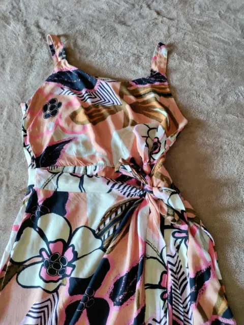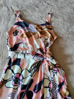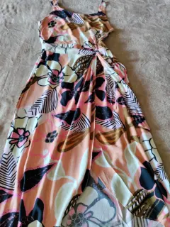 Vestido largo fresco. Vestido largo fresco con diseño floral de tirantes, abertura al frente, talla grande