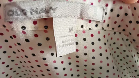 Vestido fresco con puntitos Old Navy en la orilla tiene encaje, es un vestido hermoso y casual de cuello en V, los botones son de perlas que combinan con el tono del vestido, cierre de lado talla M