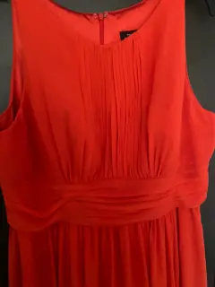 Vestido naranja de gasa liso con una cintilla abajo del busto lo que hace mejor figura