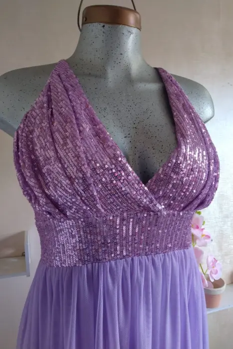 Hermoso vestido corte princesa.De mesh con lentejuela en la parte de arribaAbertura en piernas del fondoTirantea cruzado ajustablesCierte en la parte de atrasqueda mejor a talla L y XLmedidas:axila a axila: 44-54talle: 39-50largo aproximado (porque los tirantes se ajustan): 1.58