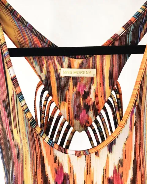Vestido largo multicolor. Vestido largo, multicolor, diseño súper sexy en la espalda, trae almohadillas en el busto