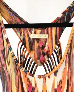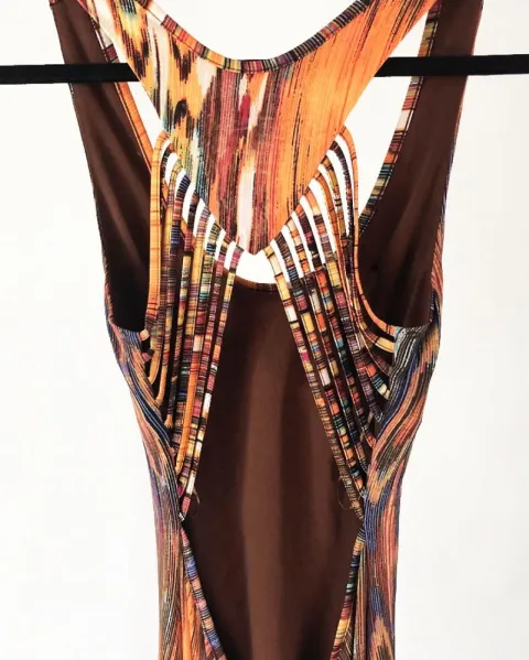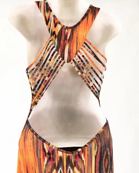 Vestido largo, multicolor, diseño súper sexy en la espalda, trae almohadillas en el busto