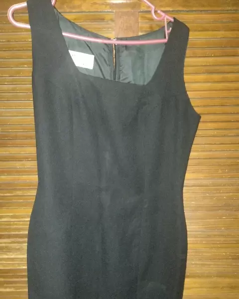 Vestido largo negro con saco, es tela tipo poliéster.El vestido es sin mangas.Talla 13Se encuentra en excelente estad