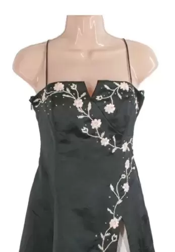 Vestido largo negro con rosa y tirantes talla XS