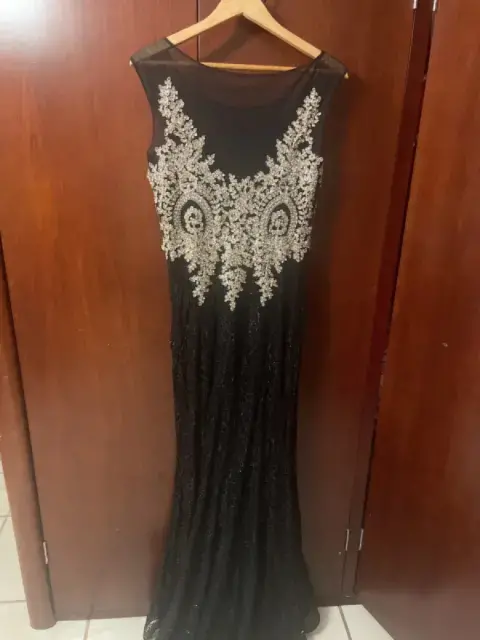 Vestido largo negro en lentejuelas. Vestido largo negro con dorado totalmente en lentejuelas Irma Perfecto con el vestido