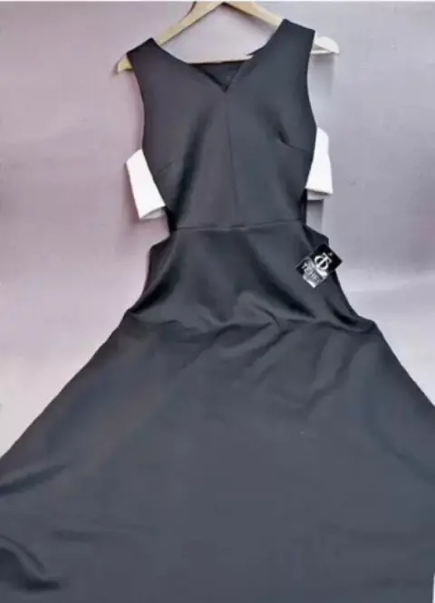 Vestido largo negro/blanco con costados abiertos muy lindo, se ven muy lindo puesto es largo, esta nuevo sin usar. Es talla large, pero puede quedarle a una mediana por que se estira