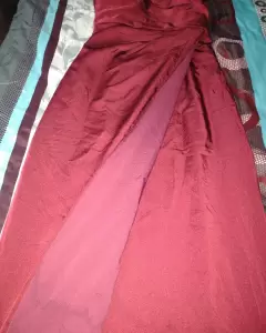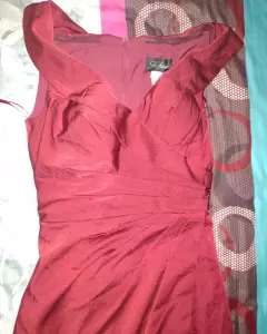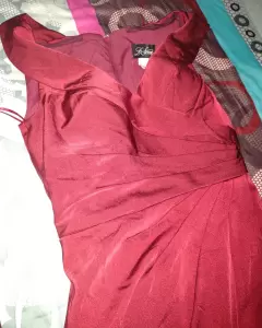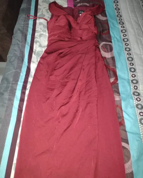 Vestido color vino para fiesta de noche largo talla XXS, sin ningún detalle, una sola puesta, con silicón a la orilla de mangas y pecho para evitar que se resbale, así mismo tiene copas para mayor comodidad, SUPER LINDO!