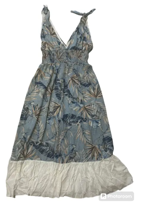 Vestido largo playero. Lindo vestido talla chico, con fondo interior color celeste a la altura de la rodilla, se anuda de los hombros para ajustarlo.