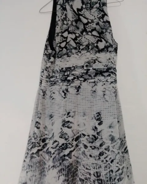 Vestido negro largo, tiene forro hasta las rodillas o poquito mas arriba, sin mangas, anexo foto con el unico detalle q tiene ( se está desprendiendo la etiqueta) todo lo demas está en perfectas condiciones!! Esta hermoso! Animate, te va a encantar!