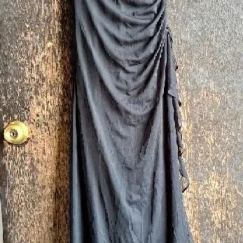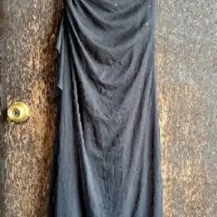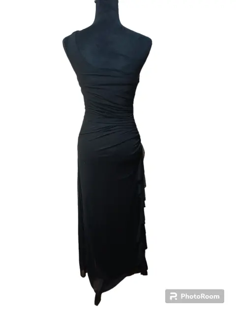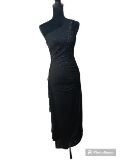 VESTIDO DE NOCHE LARGO , TALLA S, COLOR NEGRO , DE AXILA A AXILA 32CM, CINTURA 35CM , LARGO 145CM, HECHO CON SPANDEX 85% CUENTA CON PEDRERÍA COLOR PLATA, MARCA CITY TRIANGLES, SIMILAR ÚLTIMA FOTO