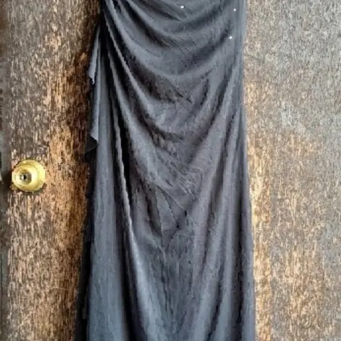 VESTIDO LARGO TALLA S. VESTIDO DE NOCHE LARGO , TALLA S, COLOR NEGRO , DE AXILA A AXILA 32CM, CINTURA 35CM , LARGO 145CM, HECHO CON SPANDEX 85% CUENTA CON PEDRERÍA COLOR PLATA, MARCA CITY TRIANGLES, SIMILAR ÚLTIMA FOTO