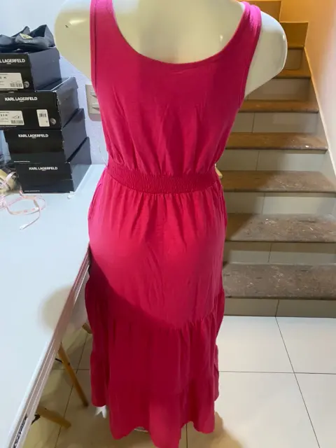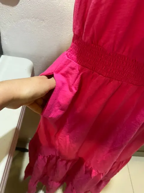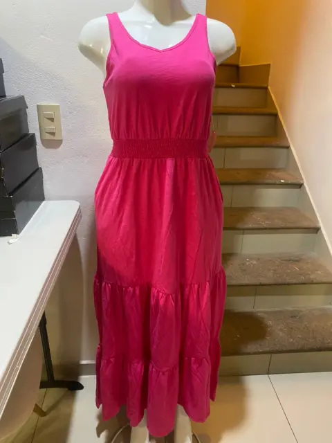 VESTIDO COLOR ROSA LARGO Y FRESCO, tela de playera por lo que estira mucho, no se transparenta, súper cómodo, tiene bolsillos a los lados, escote en V. COLOR SÚPER Bonito úsalo con sandalias o tenis. Nuevo con etiqueta sin detalles.