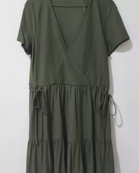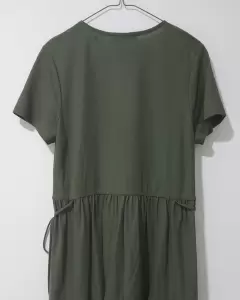 Vestido Lefties. Bonito vestido tono verde militar con coquetos listones a los lado de adorno, asi como doble plisado dando un toque coqueto y femenino