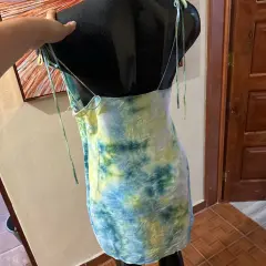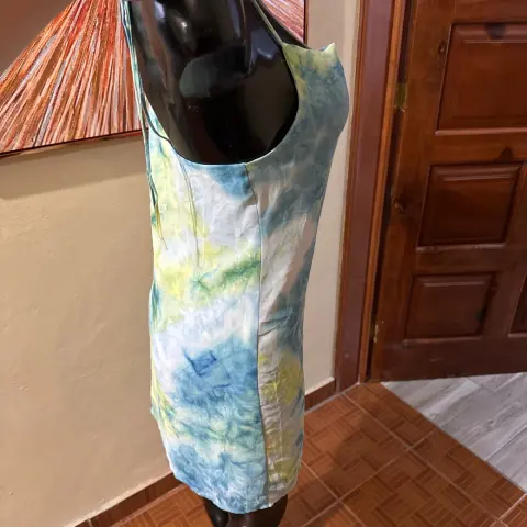 Vestido lencero tye dye. Vestido marca forever 21 sin detalles, se ajusta los tirantes, es de gasa y luce muy bonito dice talla mediana pero lo veo reducido