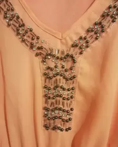 Esta en buen estado no tiene detalles, es muy fresco y con el plisado que tiene en la cintura que entallado muy bonito