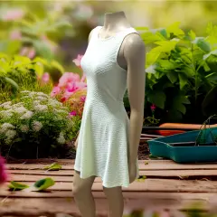 Vestido Lijero Casual Divided. Vestido Lijero Casual Divided, talla 8, color Verde aguacate Claro, estilo A, cuello Redondo, sin mangas, tirantes de espagueti, acento en V en la parte de atras, tela lijera transpirable de algodon, mide 30cm de hombro a hombro, 35cm de axila a axila, 32cm de cintura 55cm de cadera con 82cm de largo del hombro hacia abajo en buen estado cosmetico.