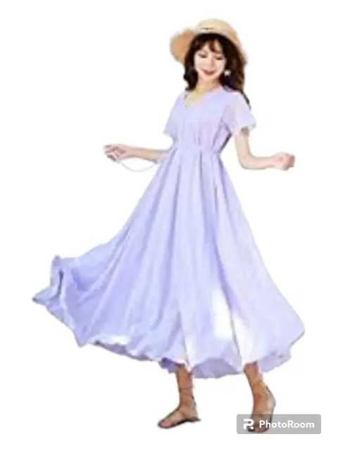 Vestido lila. Hermoso vestido lila Cintura elástica Tiene fondo llega a media piernaTalla M Como nuevo