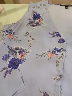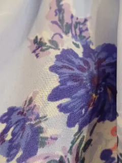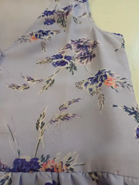 Vestido lila con flores. 💜Hermoso vestido lila con estampado de flores. Es suelto y muy fresco y juvenil. Tiene forro. Tiene broches en escote.🌸La tela es poliéster y no estira.🪻Las medidas son ax a ax 46 cm, cintura 42 CM, largo 82 cm
