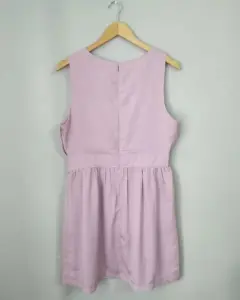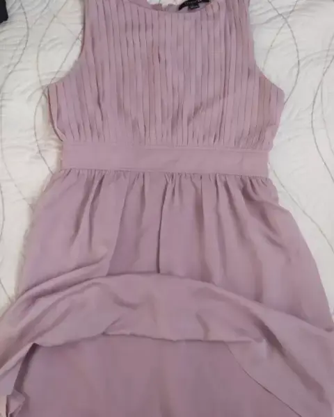Hermoso vestido lila, con tablas en la parte de arriba, tiene forro y cierre oculto. Es ligero talla L, no estira.Medidas aproximadasPecho 96 cm Cintura 80 cmLargo desde los hombros 87 cm