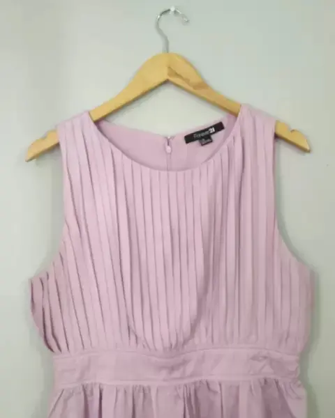 Vestido lila corto forever 21. Hermoso vestido lila, con tablas en la parte de arriba, tiene forro y cierre oculto. Es ligero talla L, no estira.Medidas aproximadasPecho 96 cm Cintura 80 cmLargo desde los hombros 87 cm