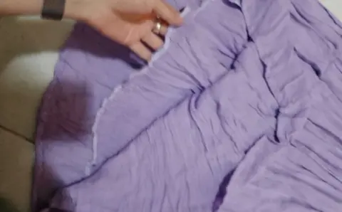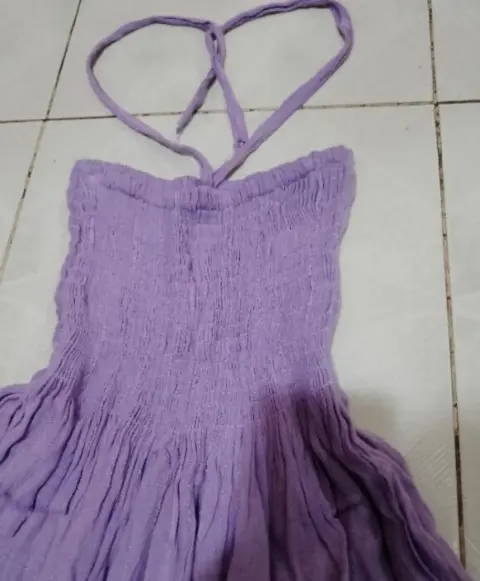 Hermoso vestido lila straples, con una caida super linda, se puede usas strapless o tambien trae una cinta para arrarlo al cuello. Tiene forro lo cual hace que no se transparente nada. Talla XS o S esta divino. No tiene. Ingun detalle, solo lo use una vez.