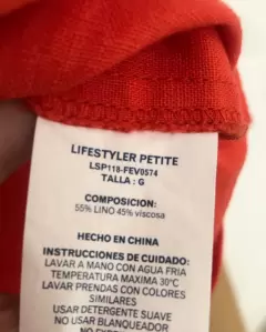 Vestido Lino naranja Life corto Style G. Vestido corto de Lino color Naranja, con Olán al frente, que puede bajarse a los hombros, marca life Style talla G