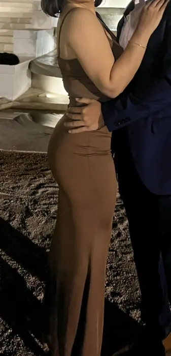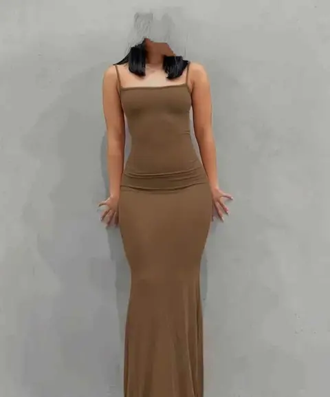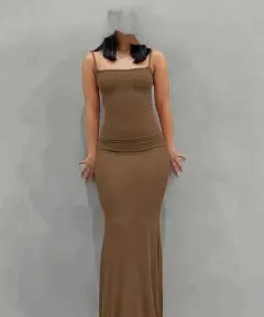 Vestido ajustado de tirantes la tela es strech talla M abertura en falda
