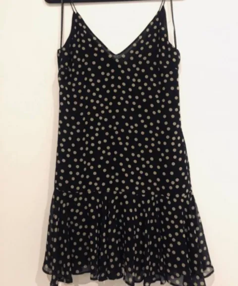 Vestido lunares. Vestido de lunares, corte recto con olan abajo, es corto (arriba de la rodilla) y con cierre lateral.