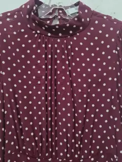 Vestido casual en color vino con lunares blancos ideal para estar cómoda y a la vez elegante.