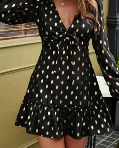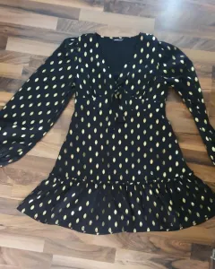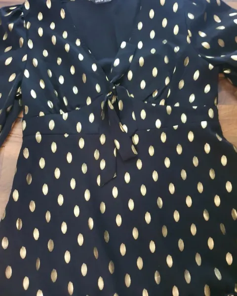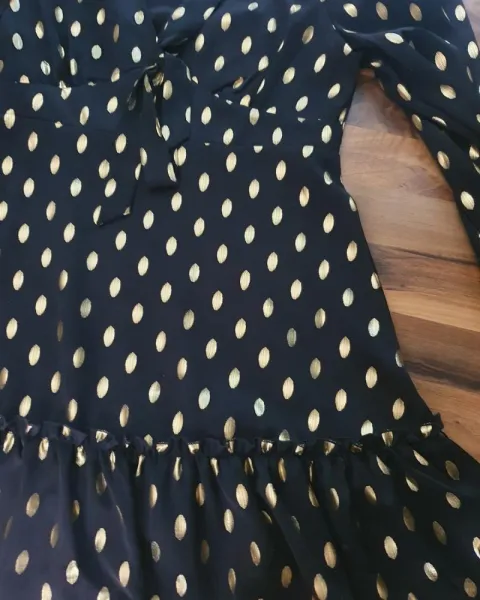 Vestido lunares. Vestido con escote en V, lunares en color dorado, super padre
