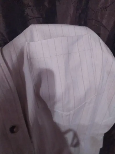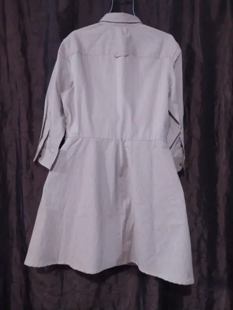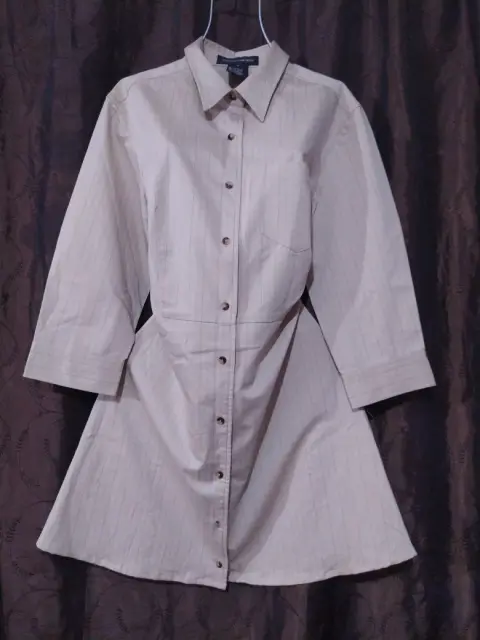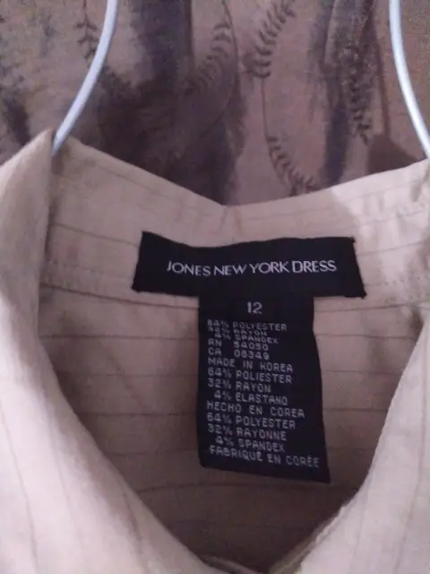 Vestido talla 12 con manga larga en color beige con rayas, trae una bolsita en la parte superior del lado izquierdo marca Jones new York drees