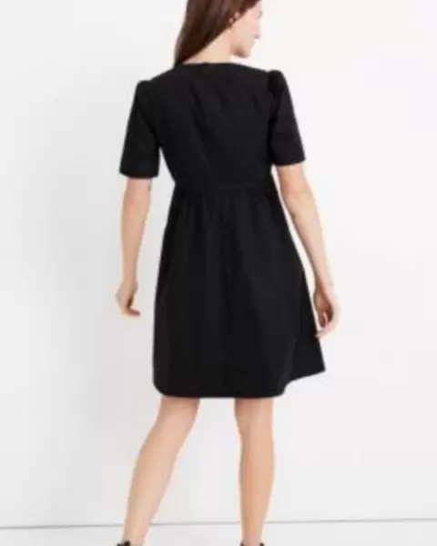 Hermoso vestido madewell talla 10 nvo, cuello en V con moño en el pecho, mangas cortas abombadas, corte de la falda en A, de algodón.