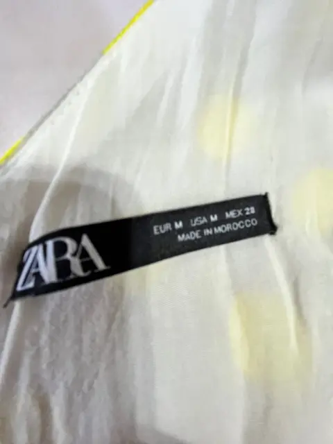Vestido manga corta. Maxi deress, manga corta, estampado con bolitas amarillas y contraste beige