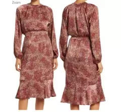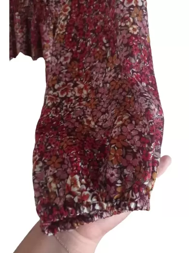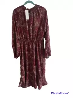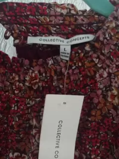 Lindo vestido de manga larga floral, con escote fruncido marca collective conceptsTalla L