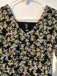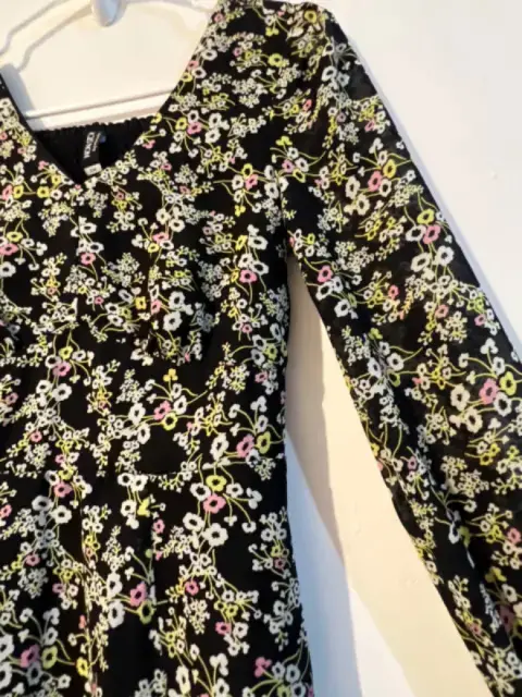 Hermoso vestido de manga larga con flores 🌺, tela delga excelente para primavera . Puedes usarlo para la oficina con zapatillas o de manera casual con tenis .Talla: CHSOLO SE USO UNA VEZ