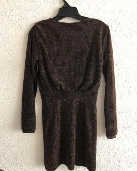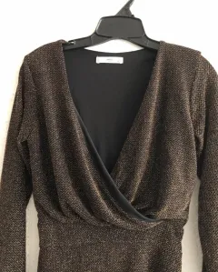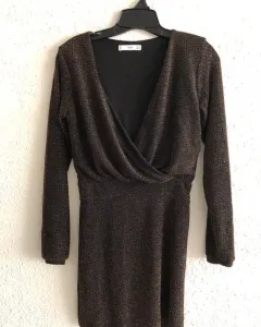 Vestido marca Mango, negro con dorado, cierre en un costado, a la rodilla. Ideal para fiesta, súper coqueto