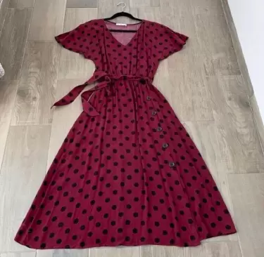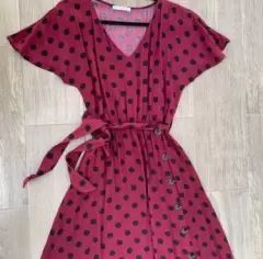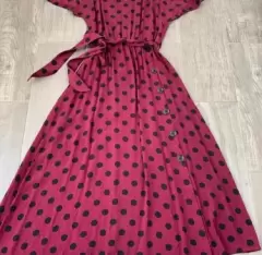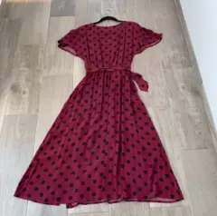 Vestido Largo manga corta, color vino con lunares negros; muy fresco y ligero. Largo:1.15, axila 58 (pero es manga caída va flojo) impecable sin detallesNuevo sin etiqueta
