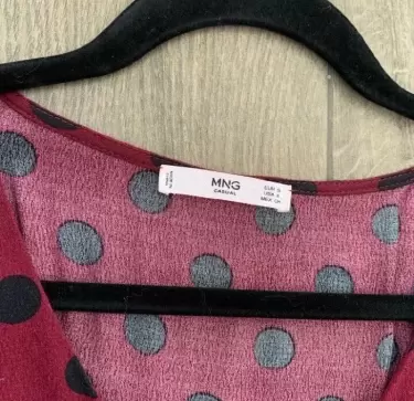 Vestido Mango T. S. Vestido Largo manga corta, color vino con lunares negros; muy fresco y ligero. Largo:1.15, axila 58 (pero es manga caída va flojo) impecable sin detallesNuevo sin etiqueta